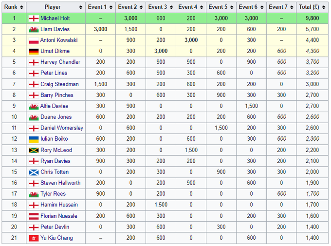 Лучший игрок (Майкл Холт) – получил лицензию в Мировой снукерный тур