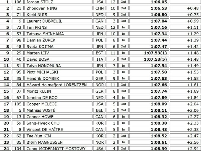 При этом американский спортсмен обновил рекорд трека на Олимпийском овале – 1:06.05. Второе место занял китайский конькобежец Нин Чжунянь, который обновил личный рекорд, а замкнул призовую тройку экс-чемпион мира Кьельд Наюс из Нидерландов.