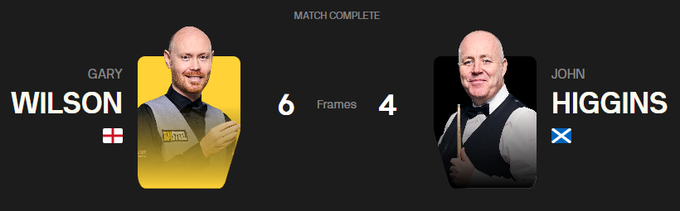 Это был вечер мечты в Лландидно для игрока из Уоллсенда, ведь он одолел одного из величайших игроков всех времен Джона Хиггинса, а также сделал 5-й максимальный брейк – 147 очков. 38-летний Гэри показал выдающуюся игру: он сделал два сотенных и еще четыре брейка за 50 и завершил игру в 10 фреймах (6:4). Уилсон вышел в свой пятый рейтинговый финал, и если он завоюет титул, то станет единственным снукеристом, кроме Джадда Трампа и Ронни О'Салливана, который выиграл несколько рейтинговых турниров в этом сезоне.