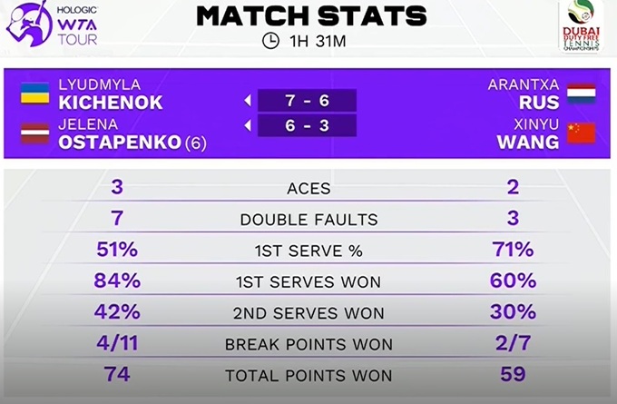 Людмила Киченок / Алена Остапенко – Аранча Рус / Ван Синьюй – 7:6(6), 6:3