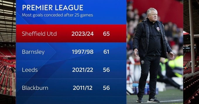 В этом сезоне «Шеффилд» пропустил 62 мяча в АПЛ, что является историческим антирекордом для первых 25 туров.