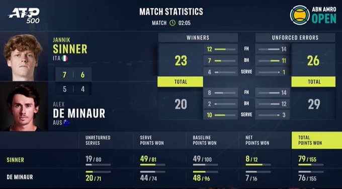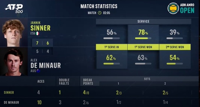 Янник Синнер (Италия) – Алекс де Минаур (Австралия) – 7:5, 6:4