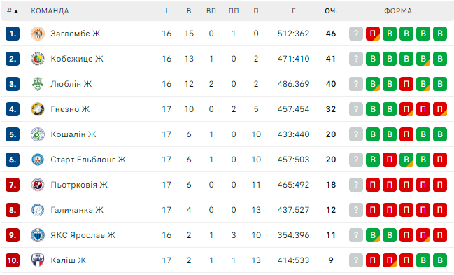 Это 9-е подряд поражение львовского клуба. Галичанка занимает в турнирной таблице 8-е место среди 10 команд, имея 12 очков (4 победы и 13 поражений).