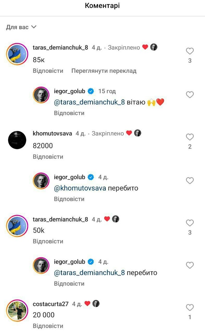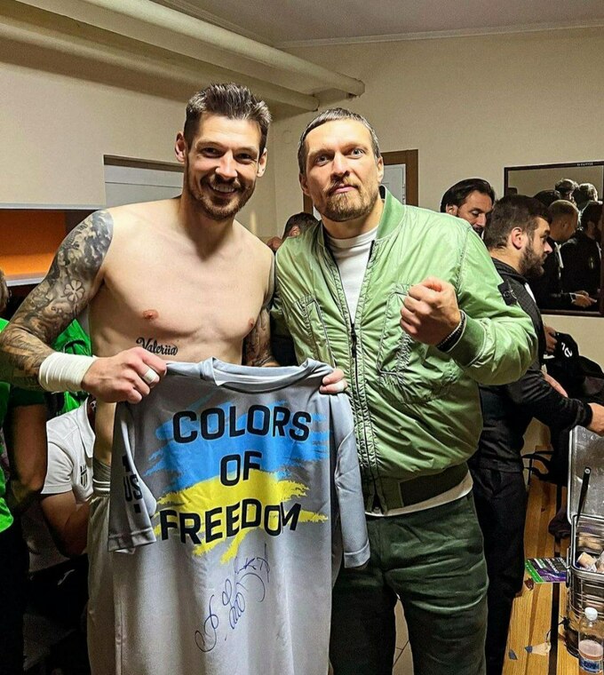 «Это специальная версия культовой футболки Colors of Freedom, которая вышла в очень лимитированном тираже и коммерчески не реализовывалась. Ее Саня подписал и лично подарил голкиперу Денису Бойко в раздевалке после первой исторической победы футбольного клуба «Полесье» над киевским Динамо (3:2, 16.10.2023)», – написал Голуб.