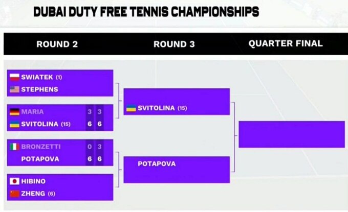 В 1/8 финала тысячника в ОАЭ Свитолина может встретится с первой ракеткой мира Игой Свентек, если полька выиграет у Слоан Стивенс.