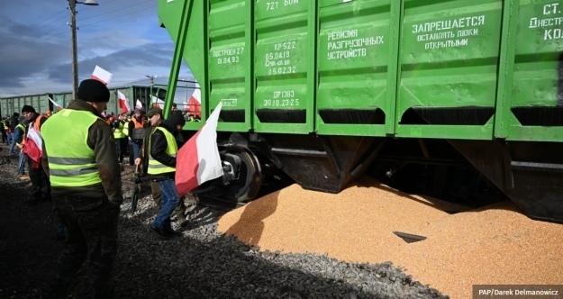 Утром 20 февраля польские фермеры перекрыли железную дорогу возле КПП Медыка – Шегини и высыпали часть зерна из грузового поезда на пути, на место происшествия прибыла полиция.