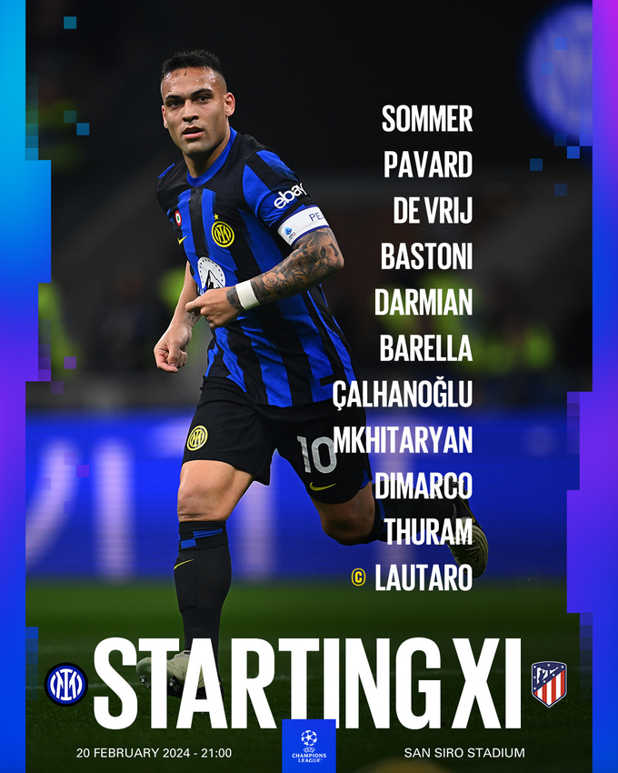 «Интер»: Зоммер, Павар, де Врей, Бастони, Дармиан, Барелла, Чалханоглу, Мхитарян, Димарко, Мартинес, Тюрам.