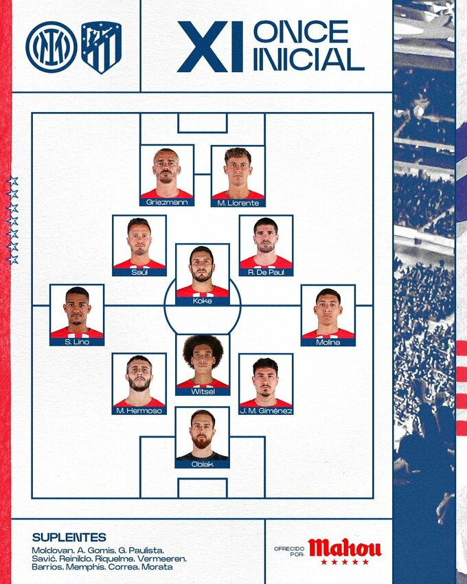 «Атлетико»: Облак, Эрмосо, Хименес, Витсель, Лино, Молина, Коке, Сауль, Де Пауль, Льоренте, Гризманн.