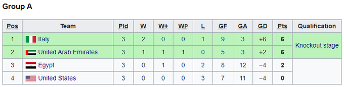 - 17:30. Италия – ОАЭ – 0:0 (пен. 1:3)