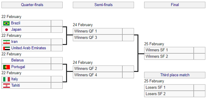 Кто на Бразилию и Португалию? Все пары 1/4 финала ЧМ по пляжному футболу
