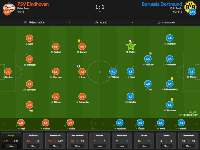 А вот в УЕФА ценным призом MVP матча отметили Джои Вермана, хавбека ПСВ, которому WhoScored поставил только оценку 6.6.