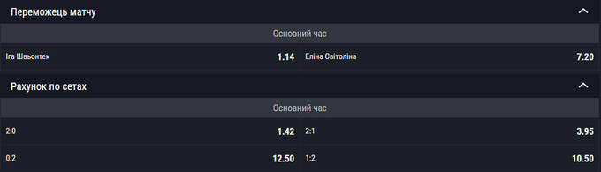 Основные котировки на матч Ига Свентек – Элина Свитолина
