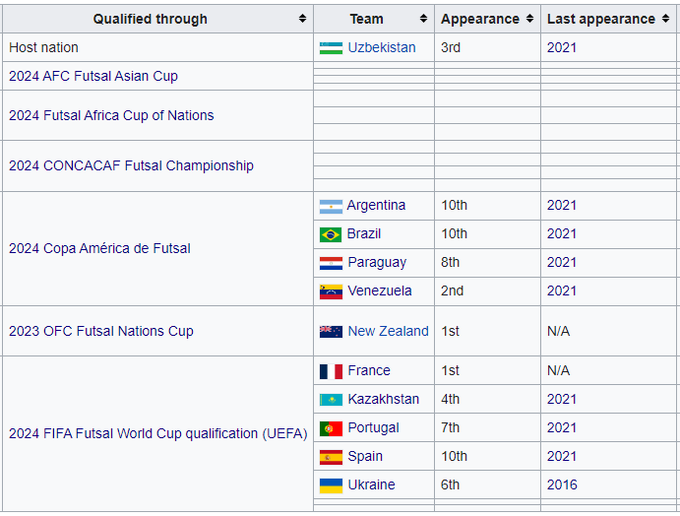 а днях стали известны еще четыре участника финального турнира чемпионата мира по футзалу 2024, который в период с 14 сентября по 6 октября состоится в Узбекистане.