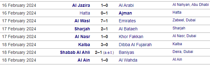 Определены все четвертьфиналисты Кубка Президента ОАЭ. Ими стали: