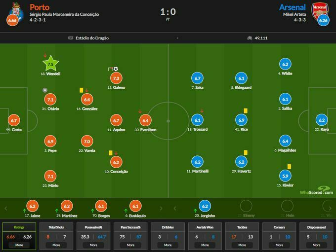 По версии WhoScored лучшим в составе хозяев также был именно Галено (7.3). В составе «Арсенала» не нашлось игроков, кто наиграл на 7 баллов или больше. Конкурент Зинченко на позиции левого защитника Якуб Кивиор с оценкой 5.9 стал худшим игроком в обеих командах.