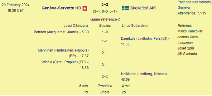 В финальном матче команда Женева-Серветт из Швейцарии нанесла поражение Шеллефтео из Швеции (3:2).