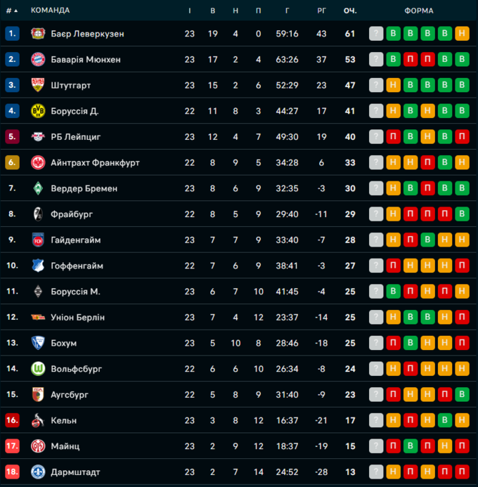 Сегодня, 24 февраля 2024 года, состоялось 5 матчей чемпионата Германии по футболу.