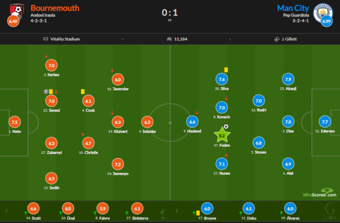 Лучшим игроком встречи был признан полузащитник «горожан» Фил Фоден, который забил единственный гол в матче и получил оценку 8.2.