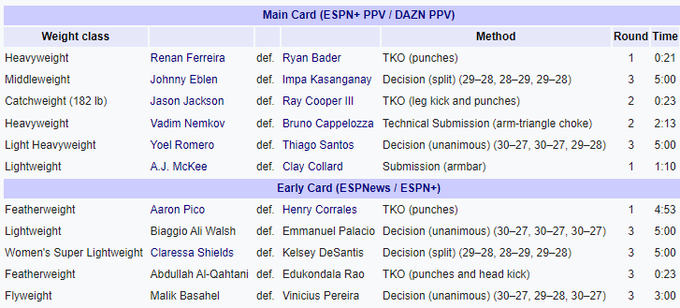 40-летний Бейдер прервал серию из трех побед кряду. 34-летний Феррейра, наоборот, продлил свою победный стрик. Тепер Ренан имеет 4 победы подряд.