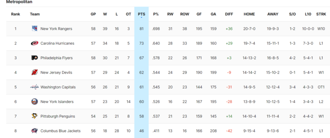 Рейнджеры Нью-Йорка в матче регулярного сезона НХЛ обыграли Филадельфию и продлили победную серию до 10 матчей, что является повторением рекорда клуба. Это позволило команде догнать Бостон, с которым Рейнджерс теперь делят первое место восточной конференции.