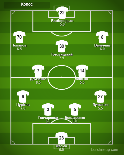 «Колос»: Фесюн, Цуриков, Гончаренко, Бондаренко, Лучкевич, Демченко, Милько, Велетень (Диего, 74), Тотовицкий, Топалов (Ильин, 88), Безбородько (Паулаускас, 68).