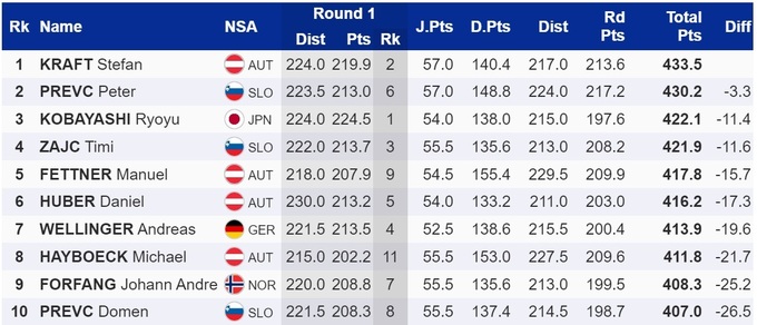 Свою десятую победу в сезоне одержал лидер общего зачета Кубка мира, австриец Штефан Крафт. Он опередил словенца Петера Превца и японца Рёю Кобаяси.