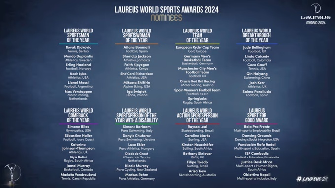 Пресс-служба премии Laureus опубликовала реестр из шести номинантов на получение награды лучшему спортсмену 2023 года.