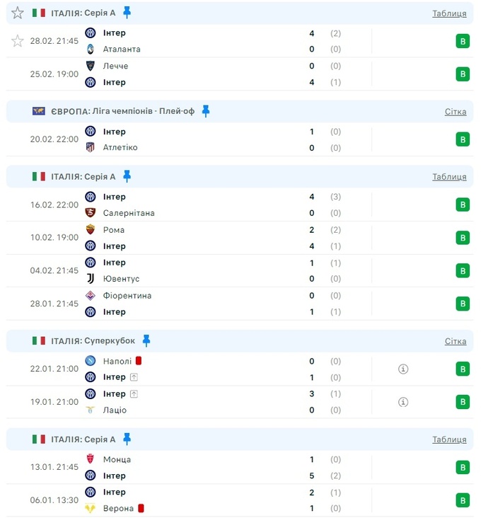В среду, 28 февраля, в перенесенной игре 21-го тура Серии А «Интер» добился победы над «Аталантой» со счетом 4:0.
