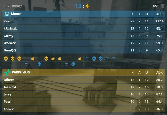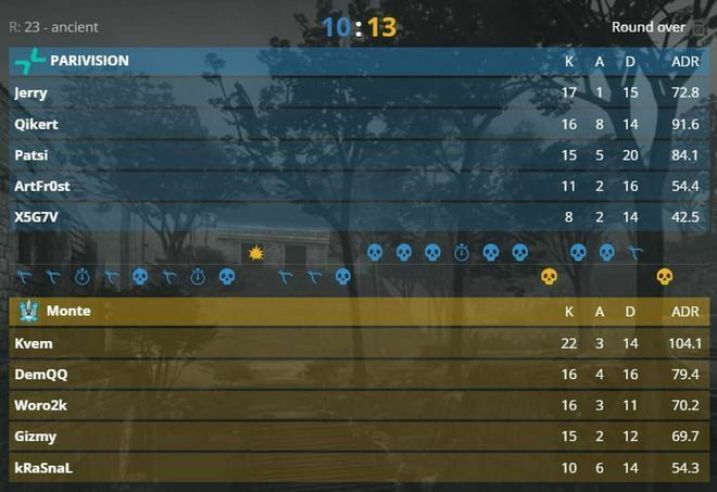 Это не помешало украинцам уверенно разобраться с оппонентами. На карте Ancient была интрига, но в решающий момент игроки Monte доказали свой класс – 13:10. На карте Mirage было избиение – 13:4.