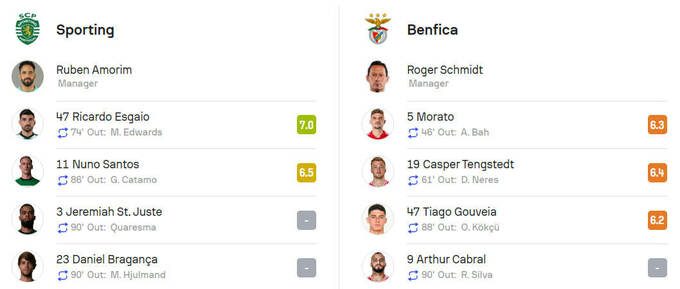 Наивысшие оценки получили Жоау Мариу («Бенфика») и Педру Гонсалвеш («Спортинг»). У обоих по 8.00 баллов.
