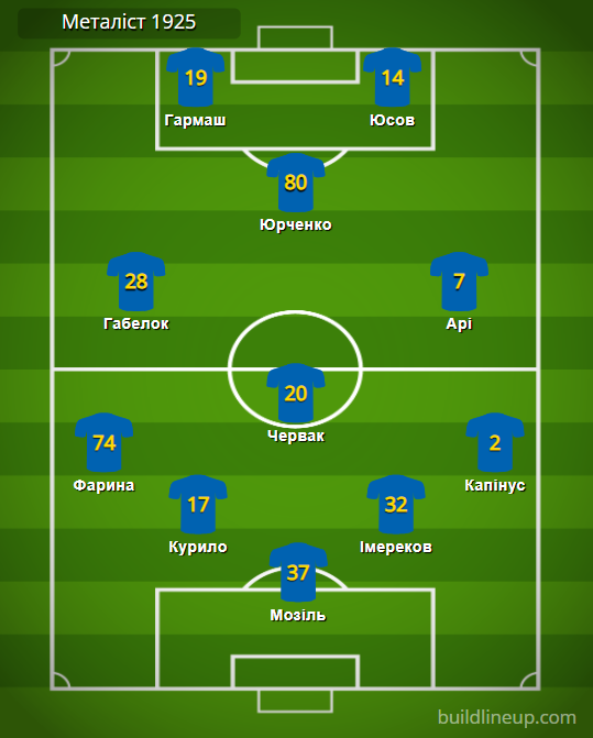 «Металлист 1925»: Мозиль – Капинус (Вачиберадзе, 82), Имереков, Курило, Фарина – Червак (Русин, 46) – Ари, Габелок – Юрченко (Жичиков, 82) – Юсов (Бычек, 67), Гармаш (Фримпонг, 67).