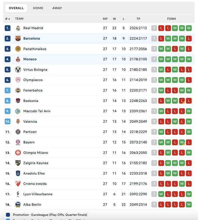 1 марта состоялся 27-й раунд регулярного чемпионата самого престижного клубного баскетбольного турнира в Европе. Во втором игровом дне Евролиги было сыграно пять матчей.