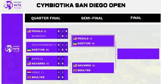 Magic 💫@marta_kostyuk will face No.1 seed Pegula in the semifinals tomorrow after defeating Pavlyuchenkova 3-6, 6-4, 6-3. #SanDiegoOpen pic.twitter.com/MxdRsYrzQD