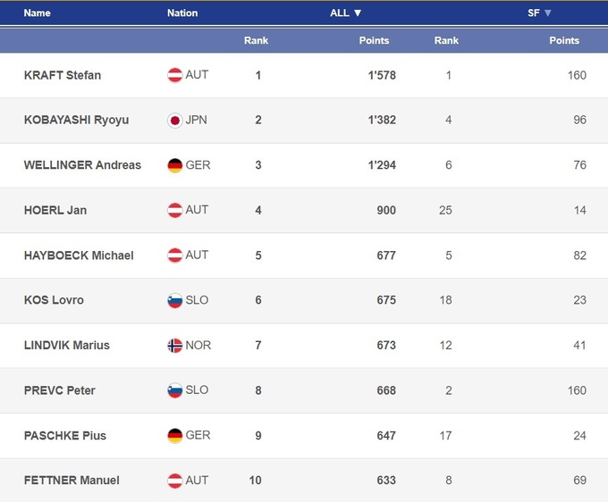 Да, в последнее время Крафту часто не везет с ветровыми условиями, но нельзя не отметить и тот факт, что его форма пошла на спад. Да, в хорошие дни он по-прежнему способен побеждать, но той поразительной стабильности, что была у Штефана в первой половине сезона, сейчас уже нет. А тем временем Рёю Кобаяси в Лахти занял третье и пятое места, и в общем зачете проигрывает австрийцу уже менее 200 баллов. Еще одна неудача Крафта – и у нас внезапно может появиться интрига в борьбе за Большой хрустальный глобус (БХГ).