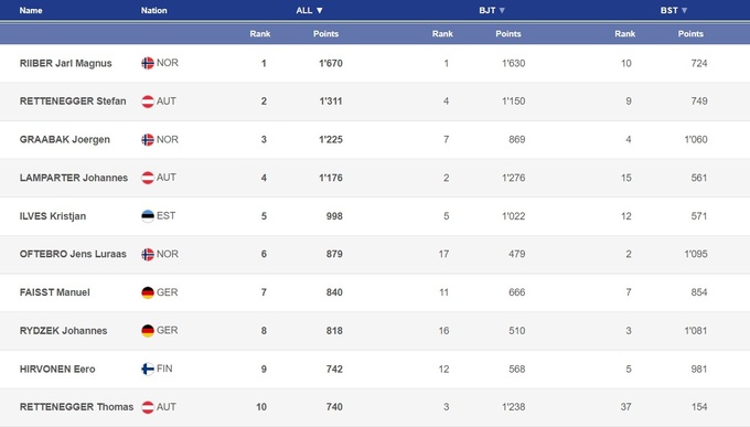 У двоеборцев Лахтинские игры, к сожалению, собрали далеко не оптимальный состав участников. Не приехала в Финляндию даже звезда №1 мирового двоеборья, Ярл Магнус Риибер, который решил уделить внимание лечению плеча, которое он повредил на самом старте сезона во время падения в тренировке в Руке. С тем преимуществом, которое у норвежца есть в общем зачете, подобную роскошь он себе мог позволить, тем более, что в Лахти состоялся лишь один личный турнир.