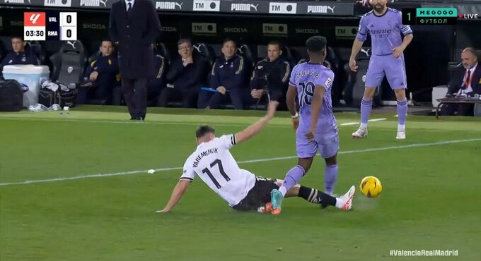 ФОТО. Яремчук получил желтую на 4-й минуте матча с Реалом за жесткий подкат