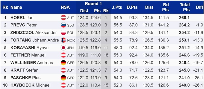 Хёрль опередил словенца Петера Превца и поляка Александера Жнищоля, который принес сборной Польши первый подиум в нынешнем сезоне.