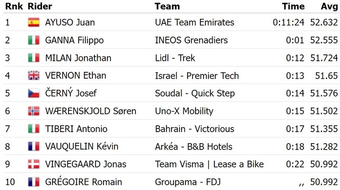 Аюсо опередил двух итальянцев – Филиппо Ганну из «Ineos Grenadiers» и Джонатана Милана из «Lidl Trek».