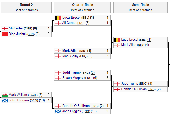 - Марк Аллен (Англия) – Марк Селби (Англия) – 4:3