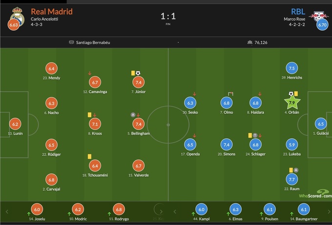 Оценки матча Реал – РБ Лейпциг от WhoScored
