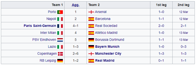 Таким образом, «Бавария», «ПСЖ», «Реал» Мадрид и «Манчестер Сити» вышли в четвертьфинал самого престижного клубного турнира Европы.