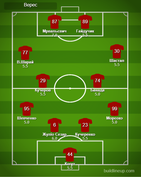 «Верес»: Когут, Шевченко, Жулио Сезар, Кучеренко, Морозко, Банада (Кухарук, 46), Кучеров, Шастал, В.Шарай (Янаков, 60), Гайдучик (Шестаков, 67), Мрвальевич.