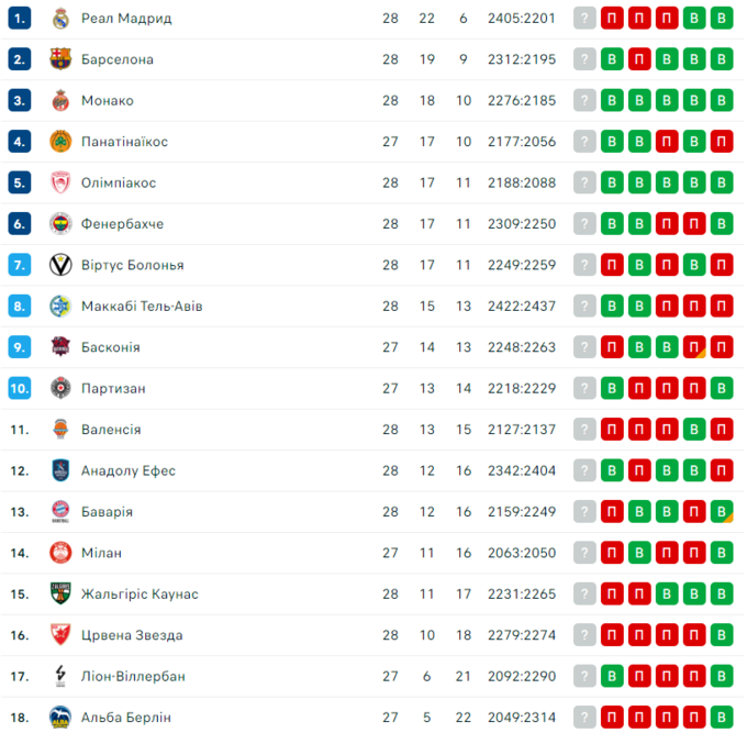 7 марта состоялся 28-й тур регулярного чемпионата самого престижного клубного баскетбольного турнира в Европе.