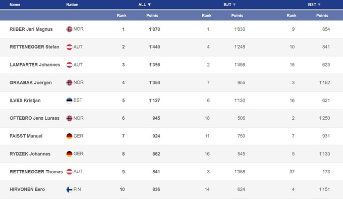 С победой Риибера в общем зачете Кубка мира вопрос уже давно решен, но интриги в конце сезона будет более чем достаточно. Во-первых, сохраняется интрига в борьбе за третье место в общем зачете. Йоханнес Лампартер в Холменколлене дважды финишировал вторым и обошел Йоргена Гробака, у которого в Осло только четвертое и шестое места. Правда, преимущество австрийца составляет всего 6 баллов, поэтому финал сезона в Тронхейме на следующей неделе будет интересным.