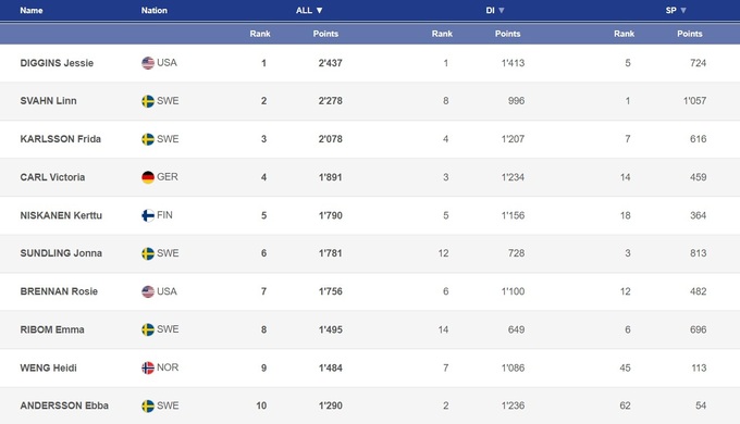 Ни одна, ни другая не входила в число топ-фаворитов гонки, поэтому и Сван, и Диггинс нацелились в первую очередь на промежуточные очки, пожертвовав потенциально более высокими местами на финише. И в итоге эта битва завершилась практически вничью: Сван отыграла всего 3 очка и сократила отставание до 159 баллов за четыре гонки до финиша сезона. Впрочем, две из них – это спринты классикой в Драммене и Фалуне, поэтому расслабляться Диггинс еще очень и очень рано.