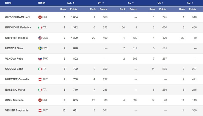 Днем ранее и Лютич, и Гизин гигант в Оре провалили. Хорватка сошла с дистанции во второй попытке, а Гизин хоть и добралась до финиша, но лишь с 17-м результатом. А победу одержала Федерика Бриньоне, для которой это вторая победа за последние два этапа. После заметного проседания формы в середине сезона итальянка, похоже, возвращается ко своей пиковой готовности. Но слишком поздно, чтобы побороться с Ларой Гут-Бехрами в общем зачете. Сама швейцарка стала в гиганте второй и продолжила движение к БХГ.