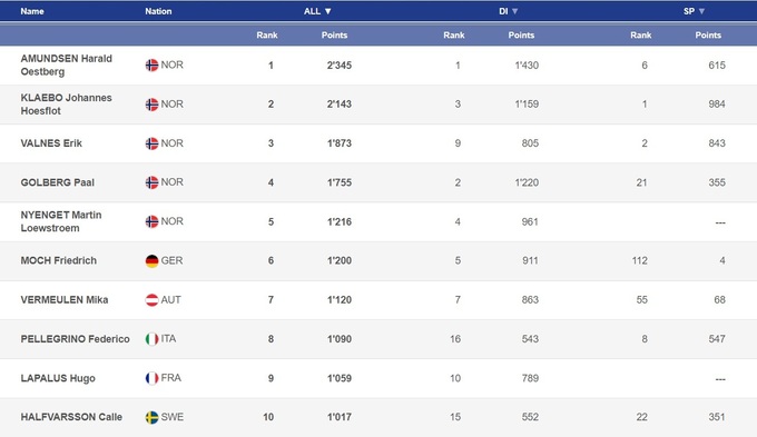 Однако сборная Норвегии на фоне всех этих скандалов продолжает выступать успешно. В субботу в третий раз в сезоне и карьере в целом поднялся на подиум Кристоффер Эриксен Сундал, при чем впервые норвежец занял второе место. А в воскресенье свою вторую в сезоне и пятую суммарно на Кубке мира победу одержал Йоханн Андре Форфанг. При чем впервые в карьере он победил на домашнем этапе.