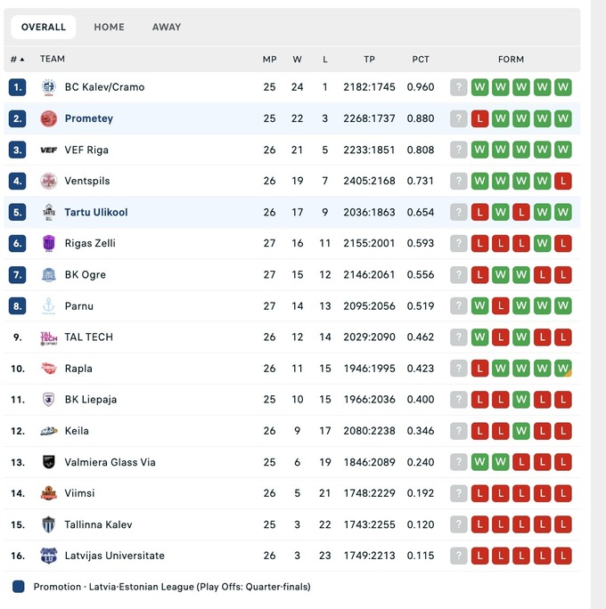 БК Тарту – Прометей. Смотреть онлайн. LIVE трансляция (матч отменен)