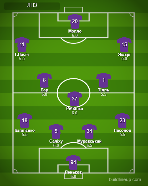 ЛНЗ: Пеньков, Тилль (С.Шестаков, 46), Салиху, Бар, Пасич, Яшари (Олейник, 73), Каплиенко, Молло (Хобленко, 58), Насонов, Муравский, Рыбалка (Тарасенко, 90).