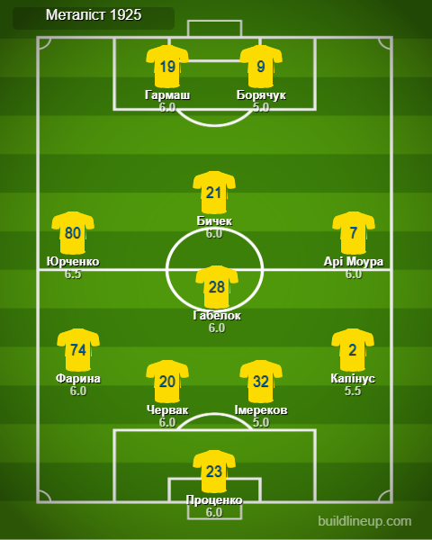 «Металлист 1925»: Проценко, Капинус, Фарина, Червак, Бычек (Фримпонг, 81), Габелок, Имереков, Моура, Юрченко, Гармаш, Борячук (Юсов, 81).